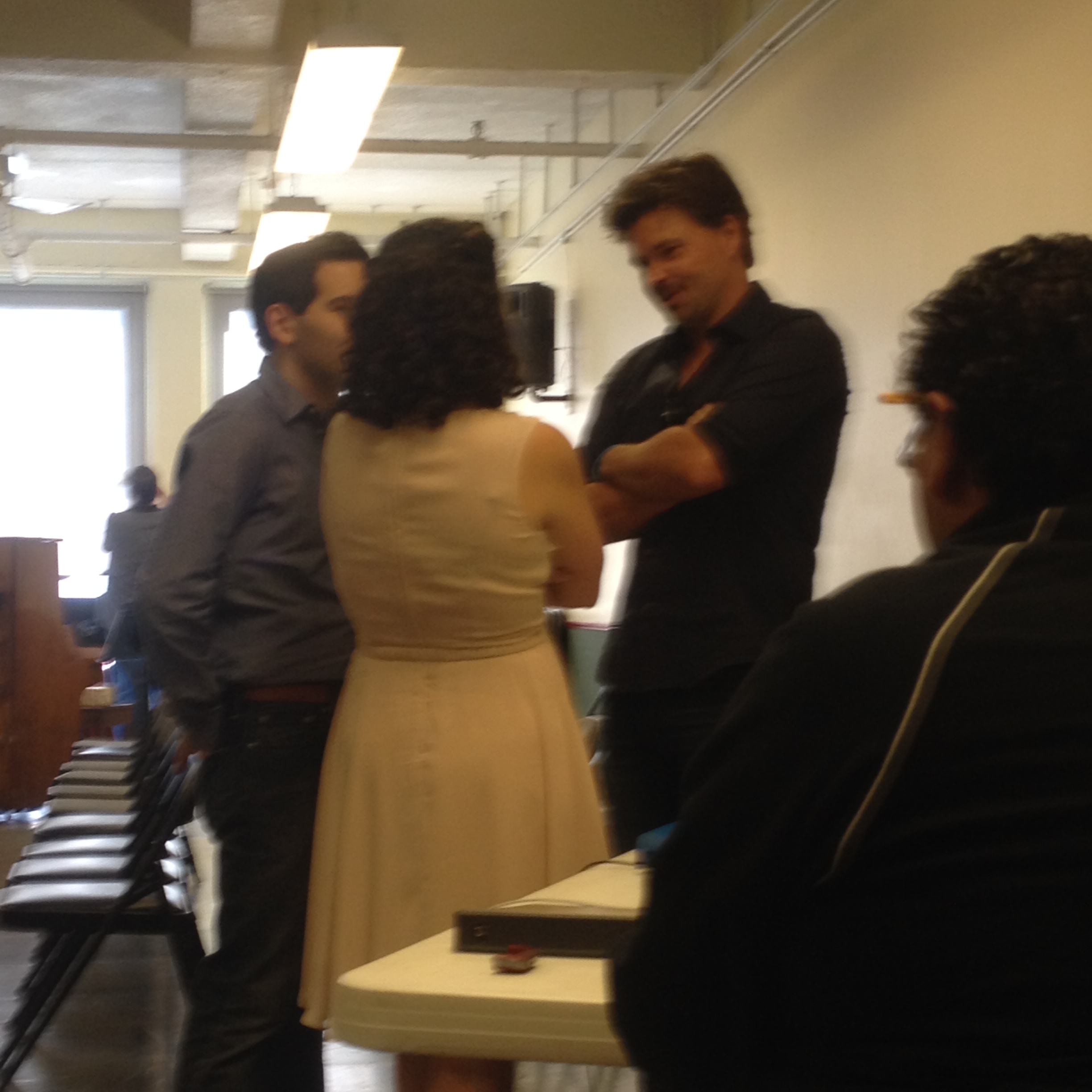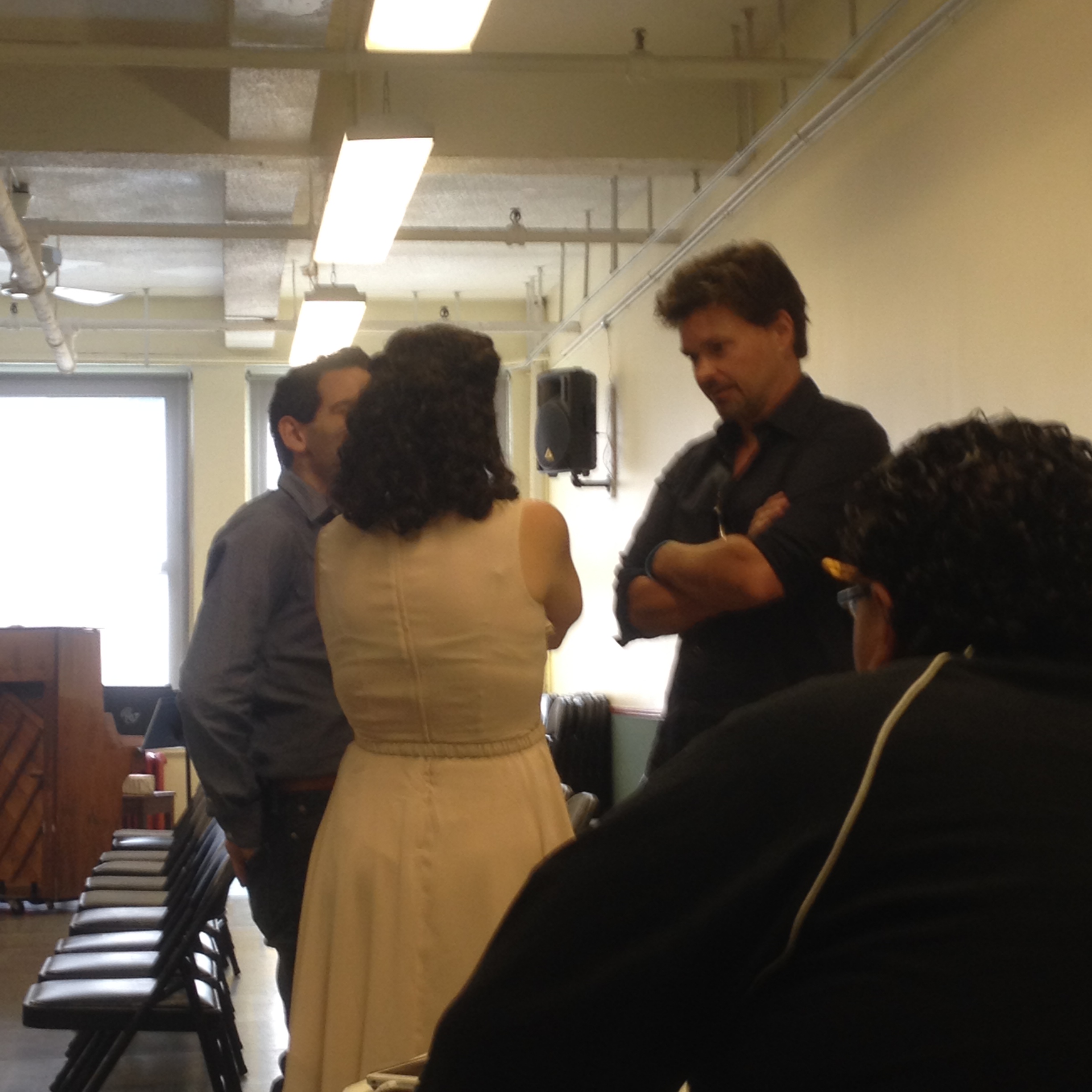 Here we are thanking Hunter and discussing some possible avenues to explore with the show after the reading. We really can’t rave about him enough. What a joy to work with. He just “got” this piece from the very beginning.