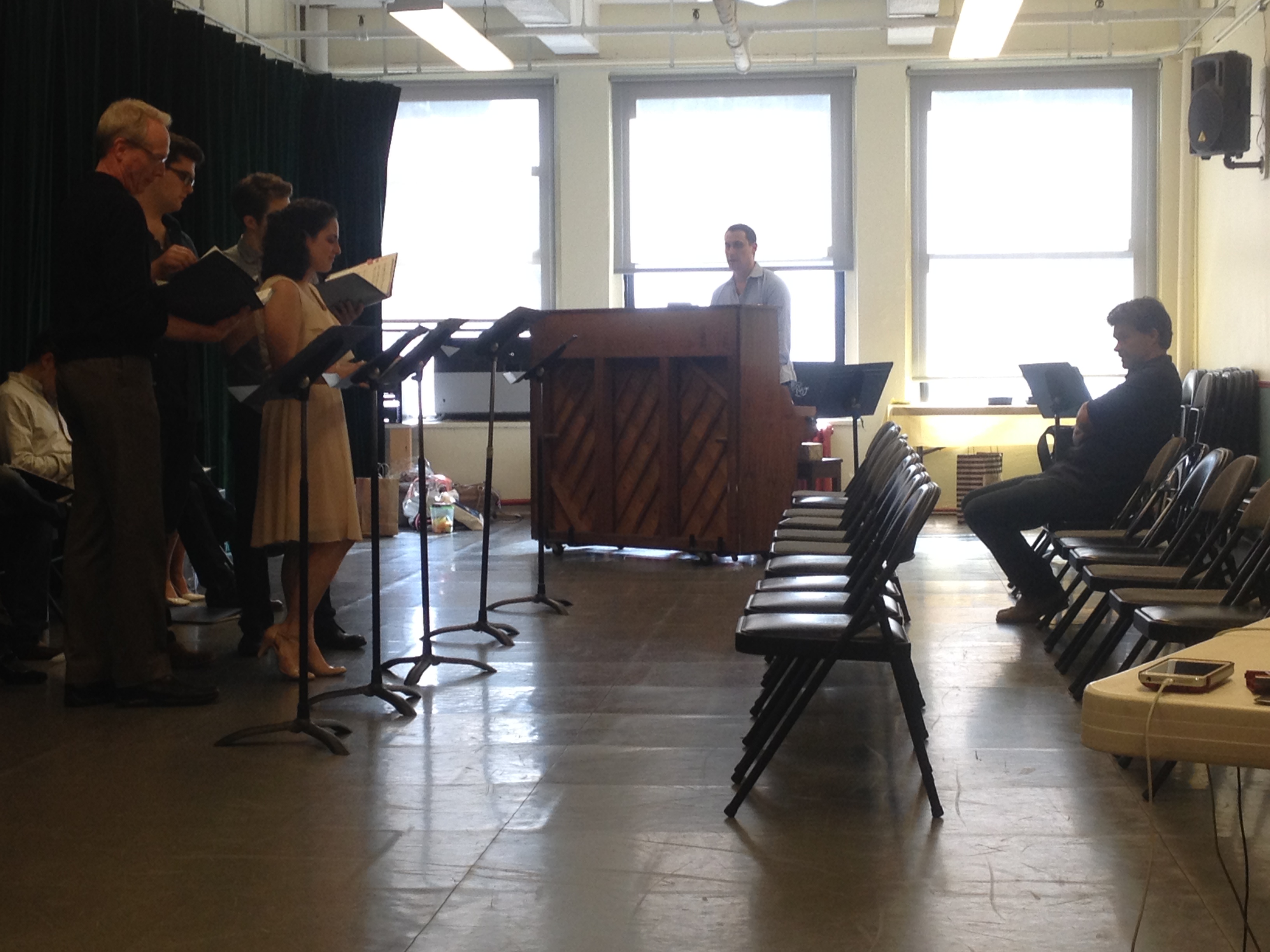 The first day of rehearsal was dedicated to teaching everyone the music. Most of the ensemble knew it since they had recorded the demo for us, but that was almost a year ago! Also Jonathan, Ruth, and Ryan were all joining the project for the first time and had never heard any of it.