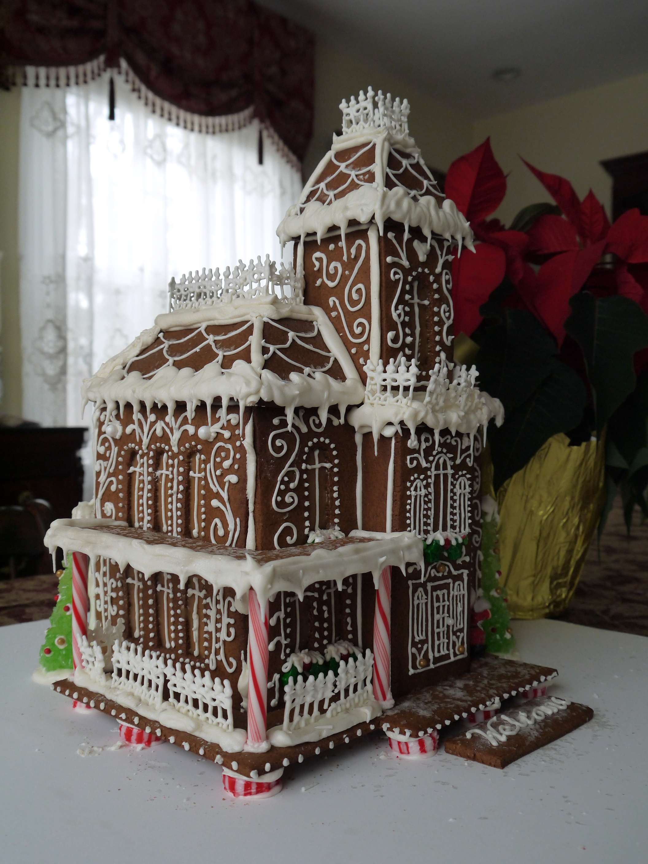 They were very delicate (they were made out of royal icing) and would break every five seconds. My family would just hear yelling and horrible exclamations coming from the kitchen. They knew to stay away when that happens.