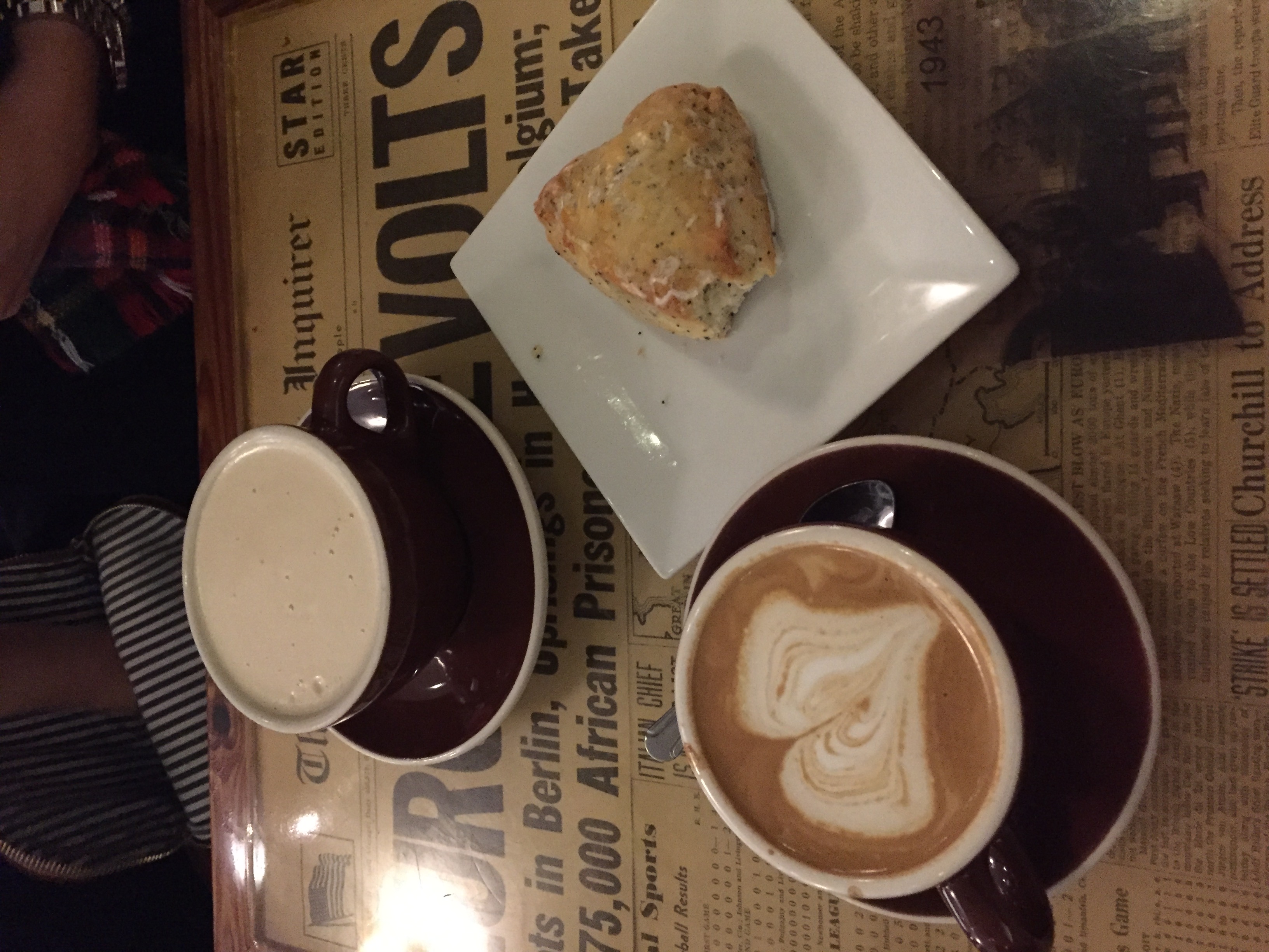 We stumbled upon a cute little coffee shop called The Thinking Cup. They offered almond milk so I ordered a hazelnut latte with almond milk. Meesh ordered a latte with almond milk and a lemon poppy scone which I might have stolen a bite or two from.